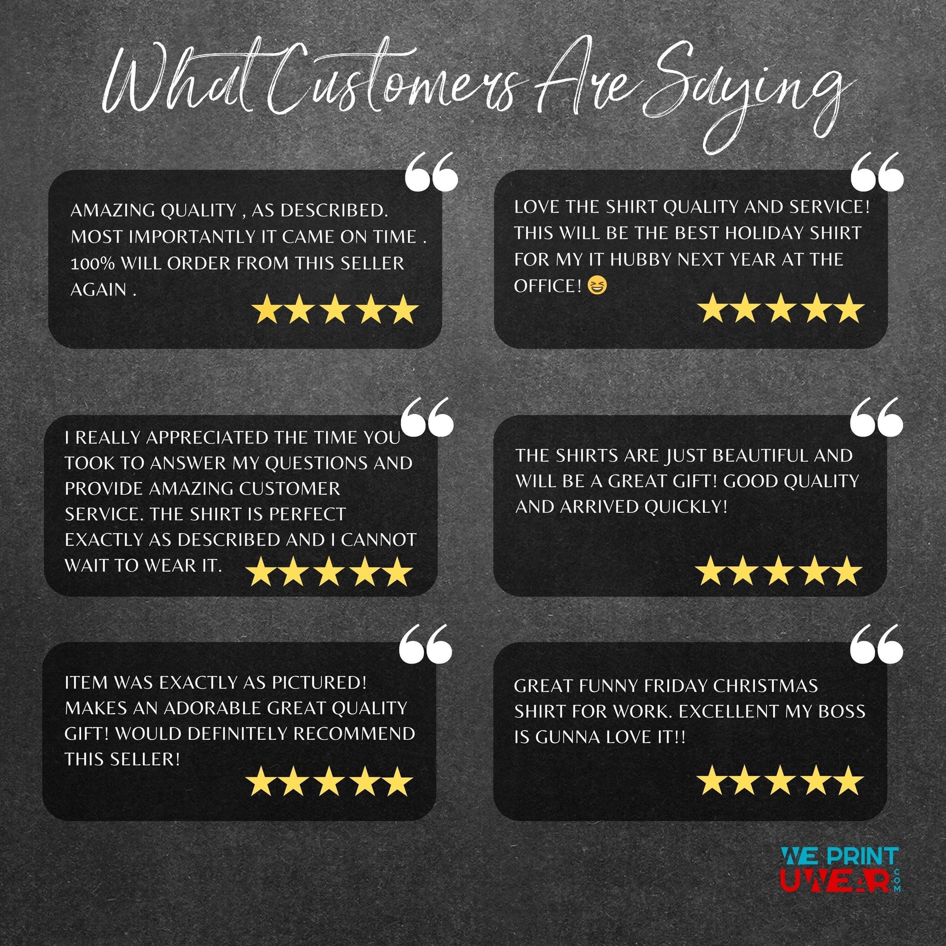 - Ideal for teams, departments, or businesses ordering group holiday shirts