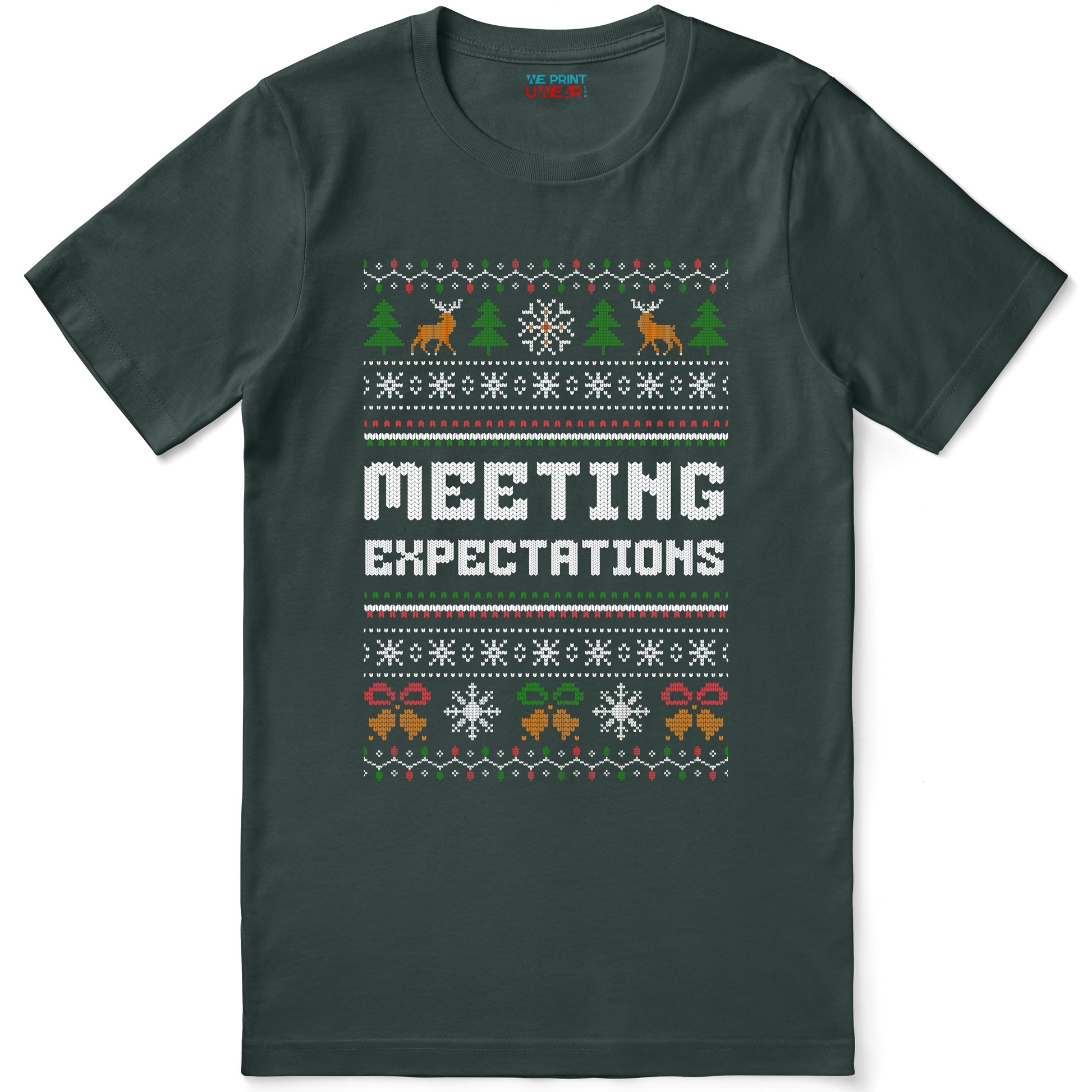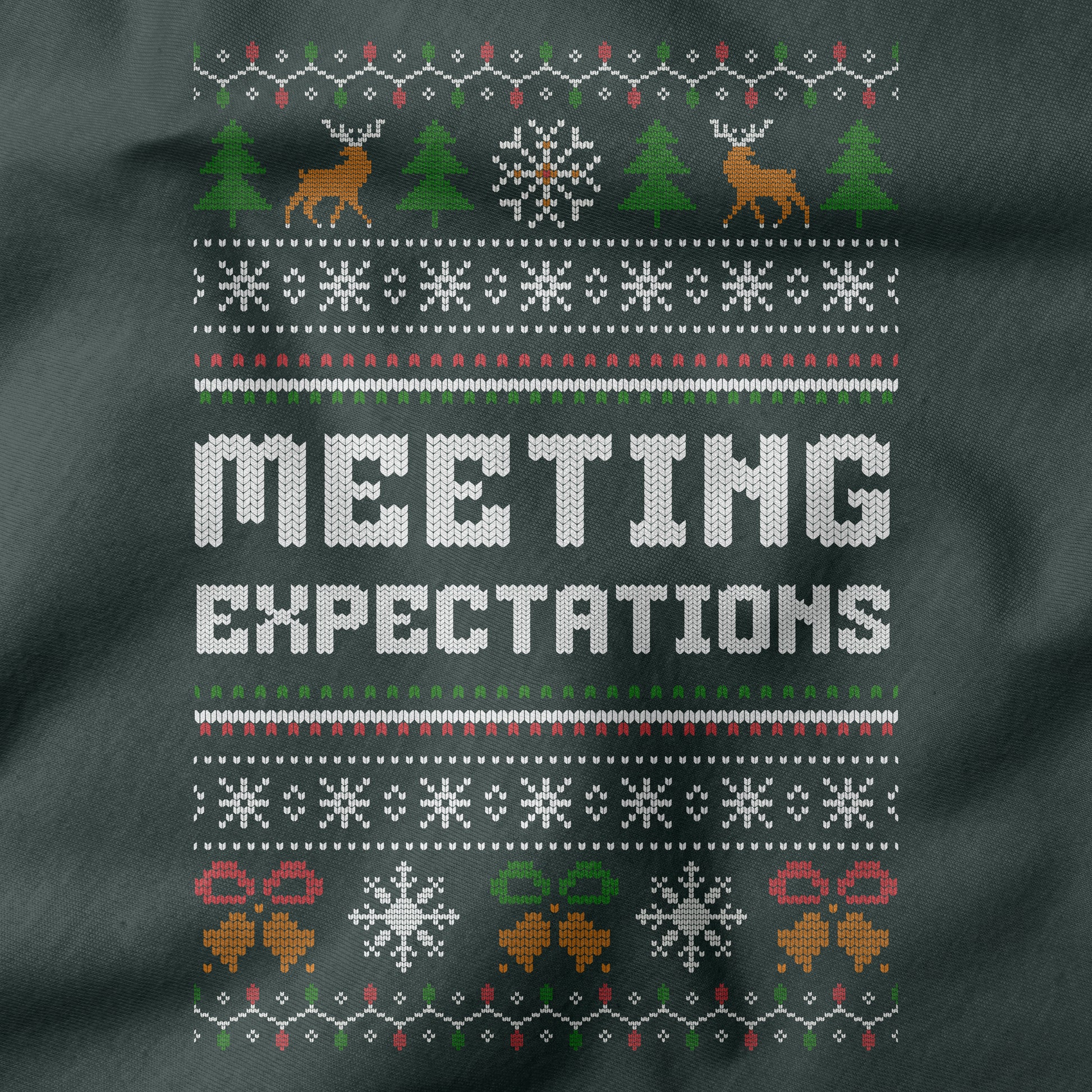Stay cozy and sarcastic! “Meeting Expectations” T-Shirt is perfect for office humor, ugly Xmas sweater contests, and gifts for coworkers.