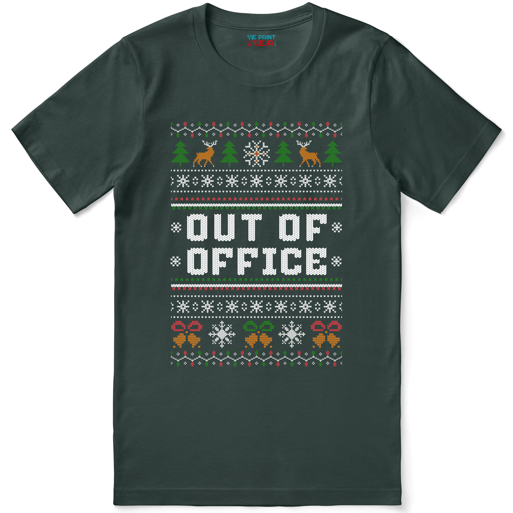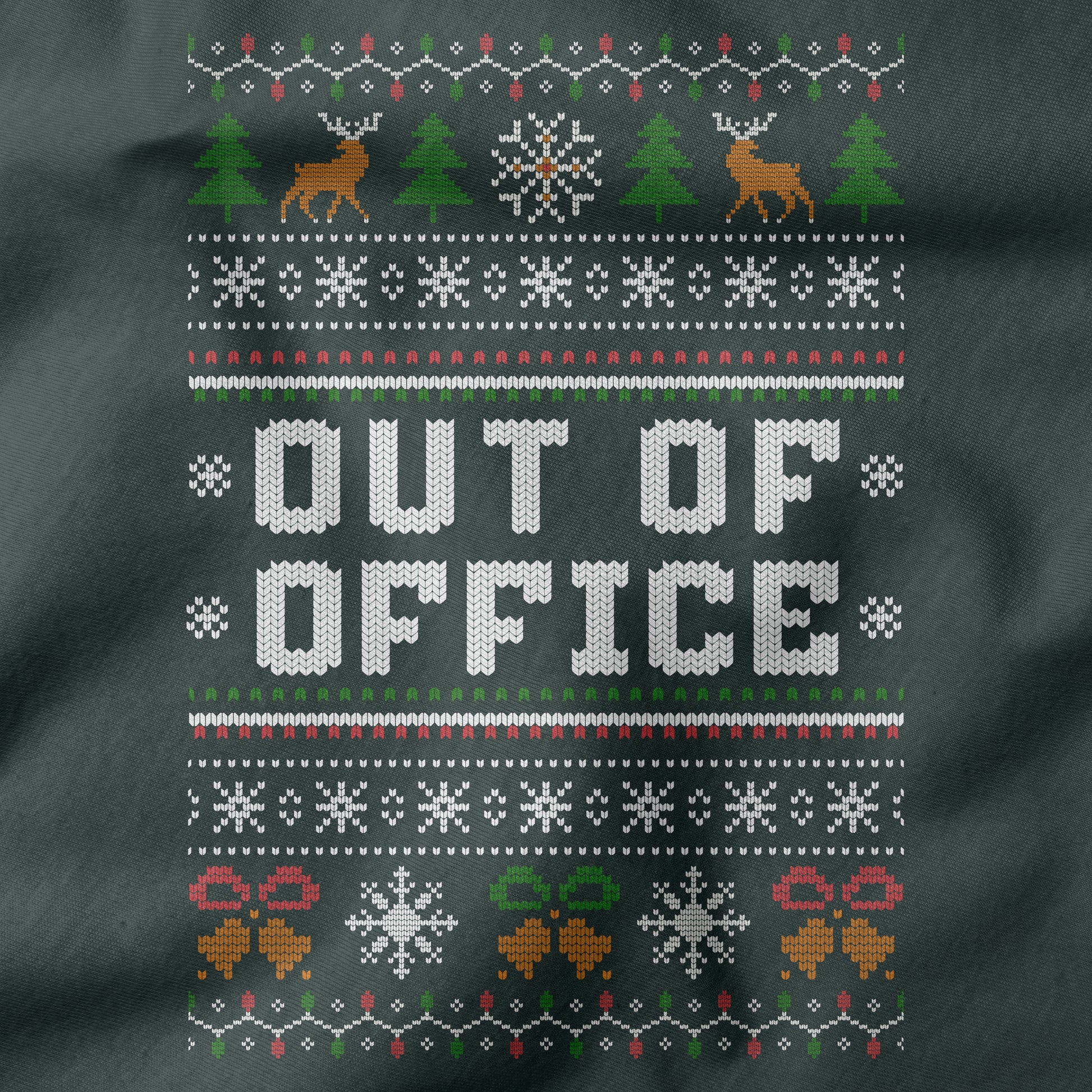 Take a break with style! “Out Of Office” T-shirt is perfect for holiday office humor, ugly Xmas shirt contests, and gifting coworkers.