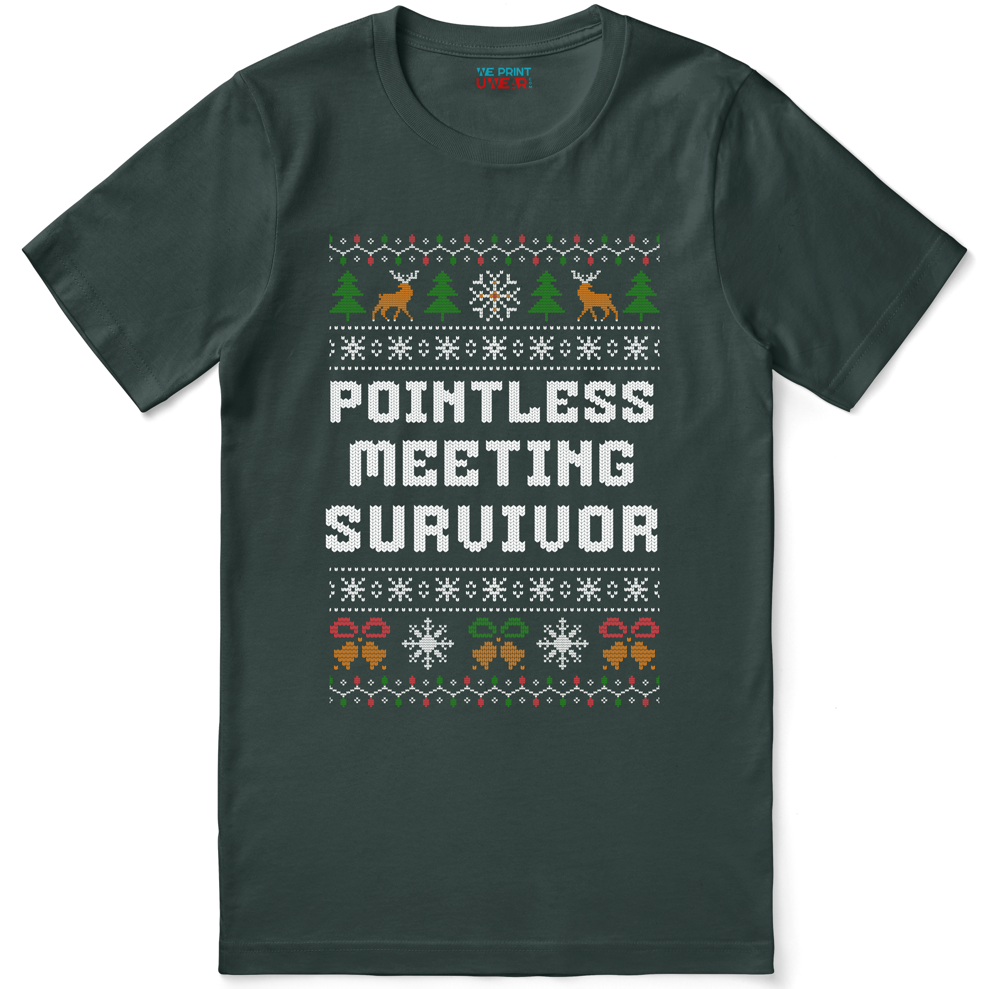 Funny Office Christmas Shirt — “Pointless Meeting Survivor”
