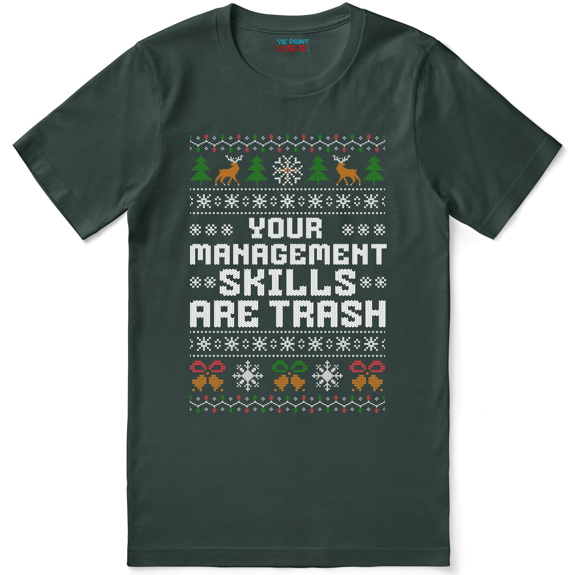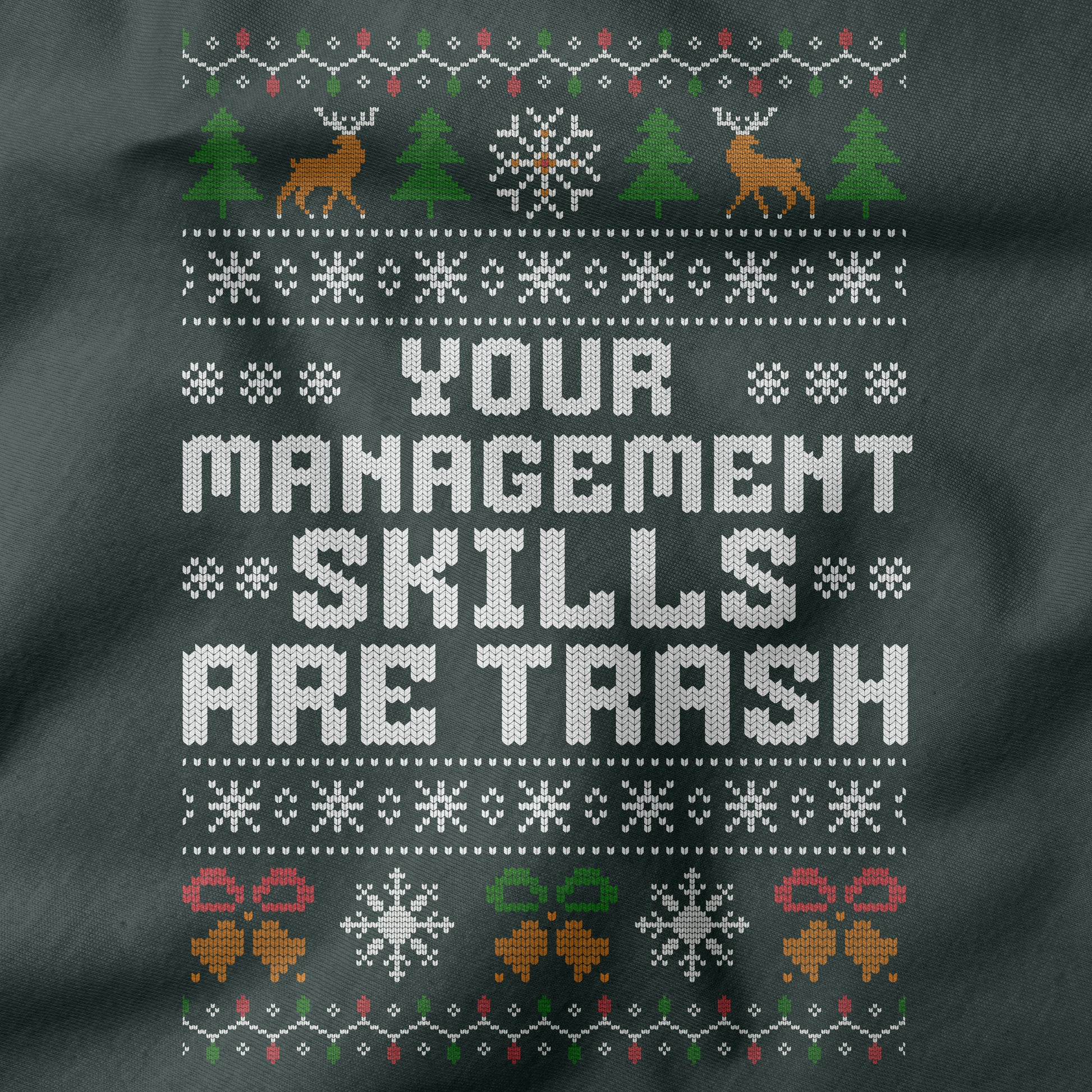 Stay cozy and sarcastic! “Your Management Skills Are Trash” T-Shirt is perfect for office humor, ugly Xmas shirts, and gifts for coworkers.