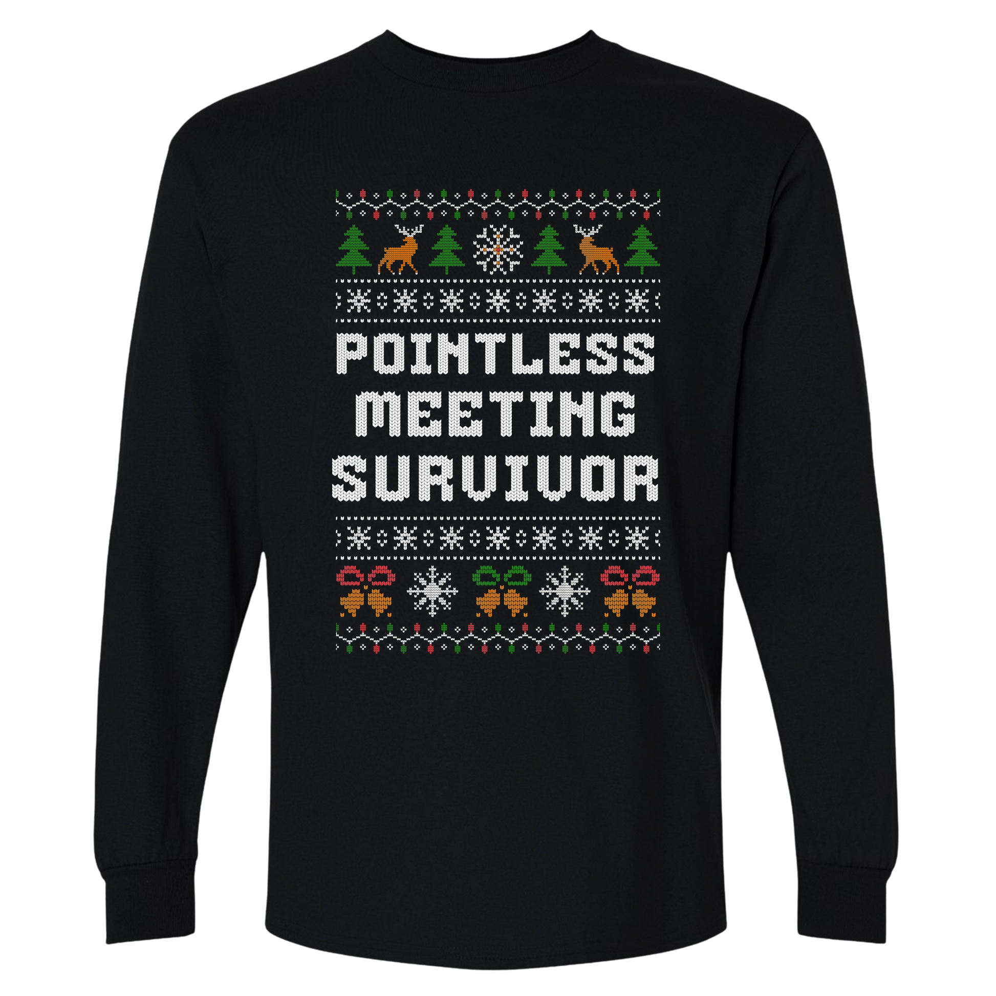 Funny Office Christmas Long Sleeve Shirt — “Pointless Meeting Survivor”