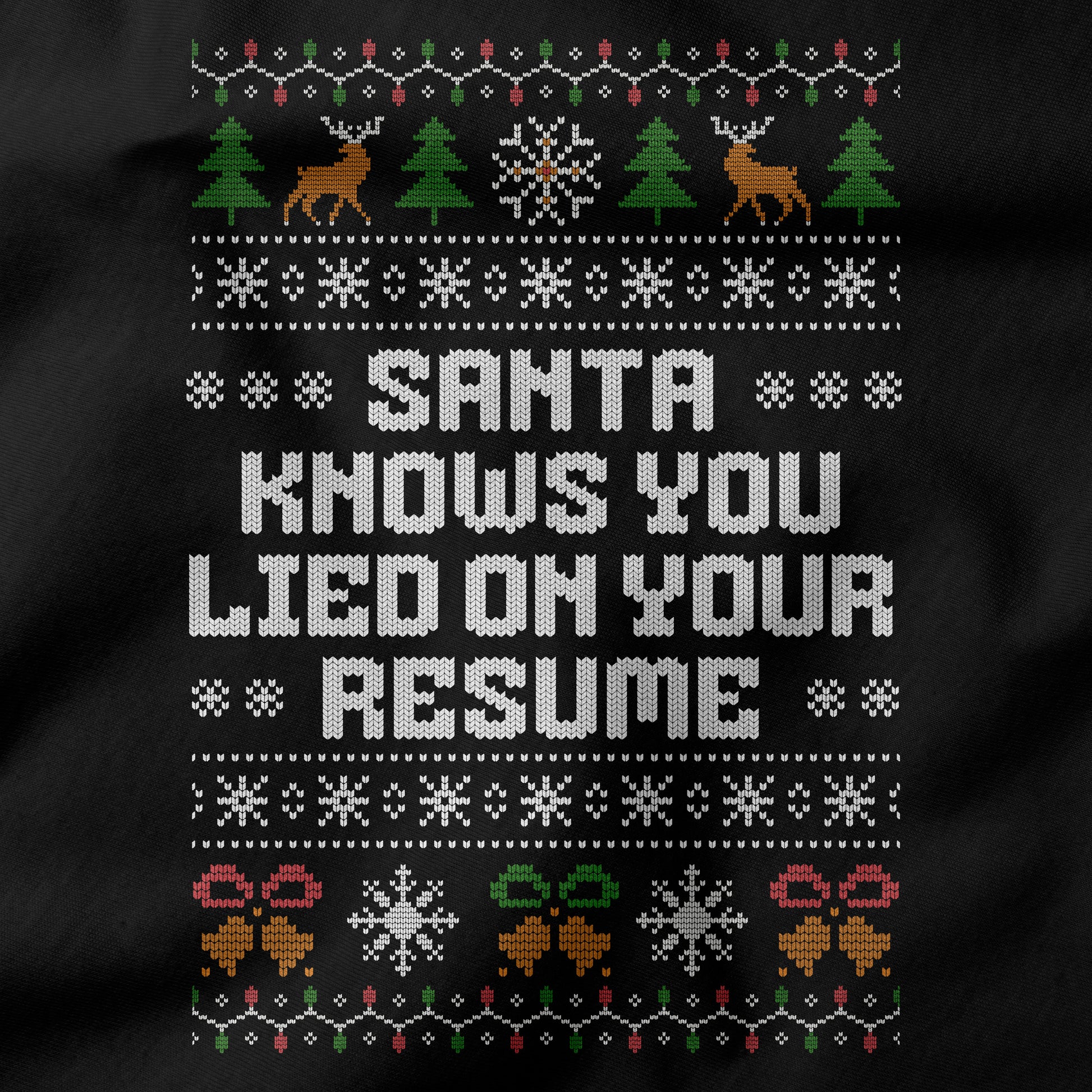 Funny Office Christmas Long Sleeve Shirt “Santa Knows You Lied On Your Resume”
