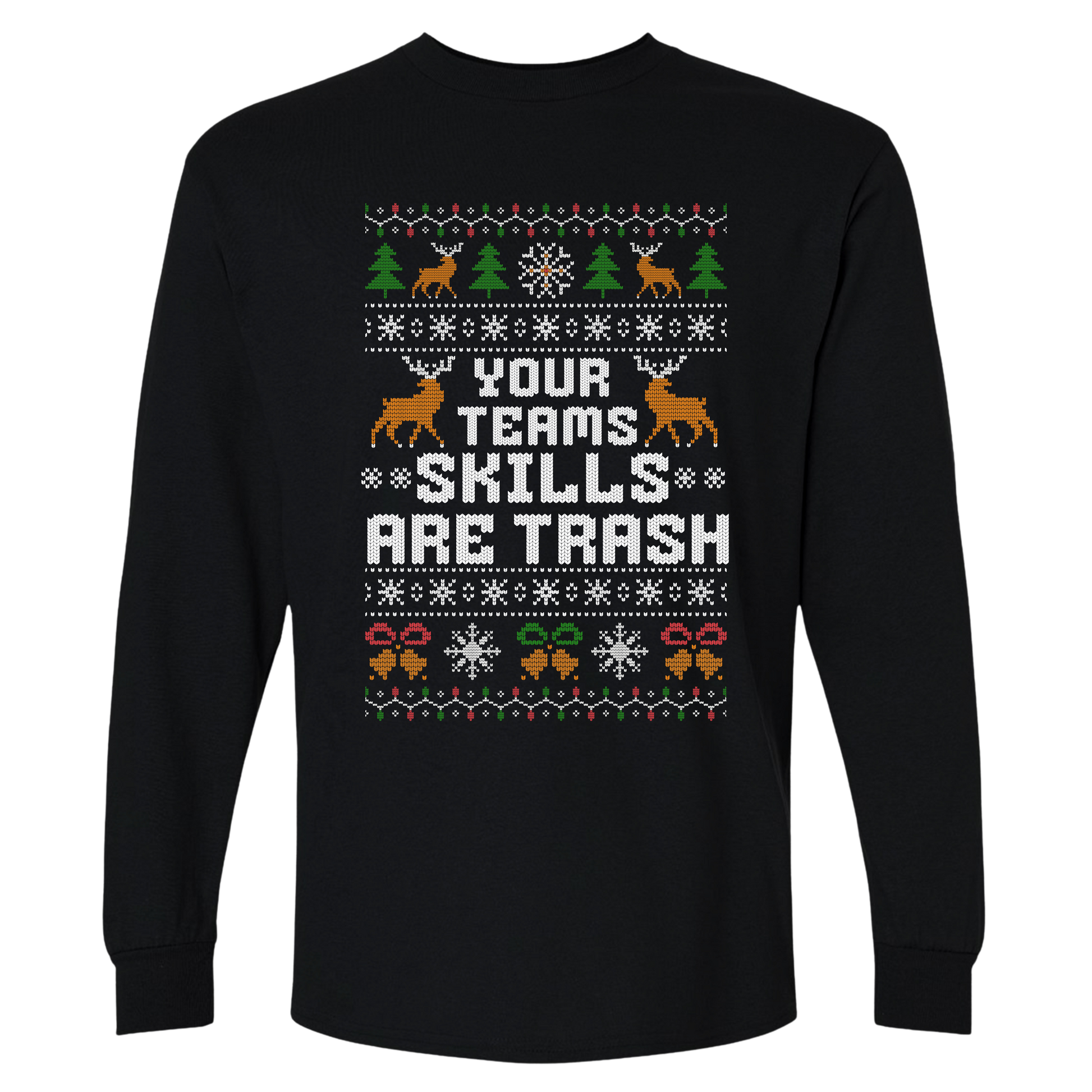 Funny Office Christmas Long Sleeve Shirt — “Your Team’s Skills Are Trash”